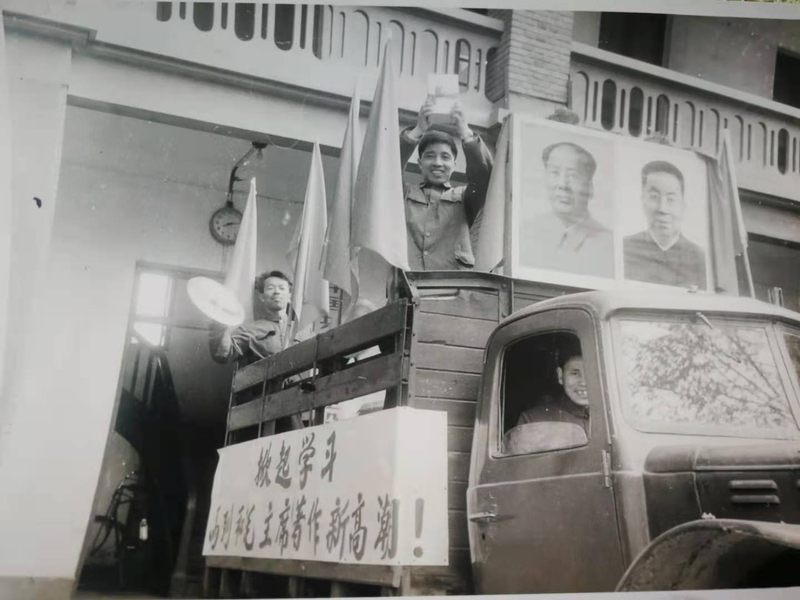 1977年時任宣傳科長朱東林從新華書店喜領毛選第五巻返校