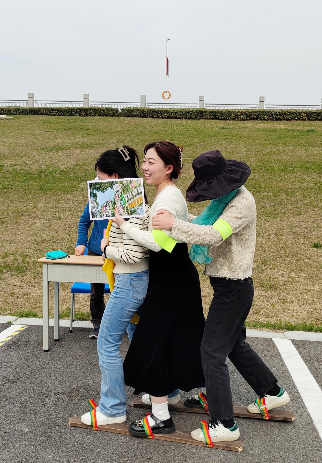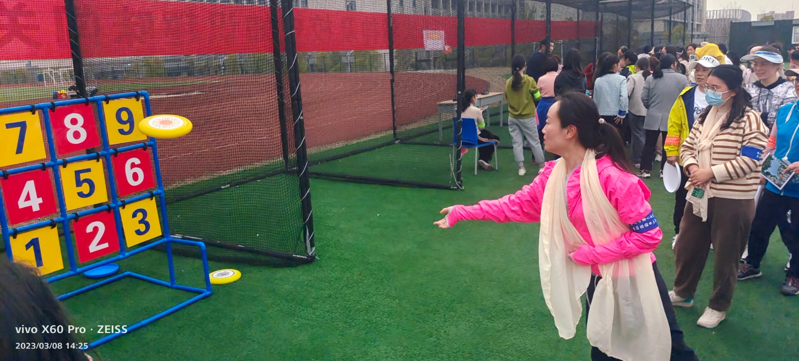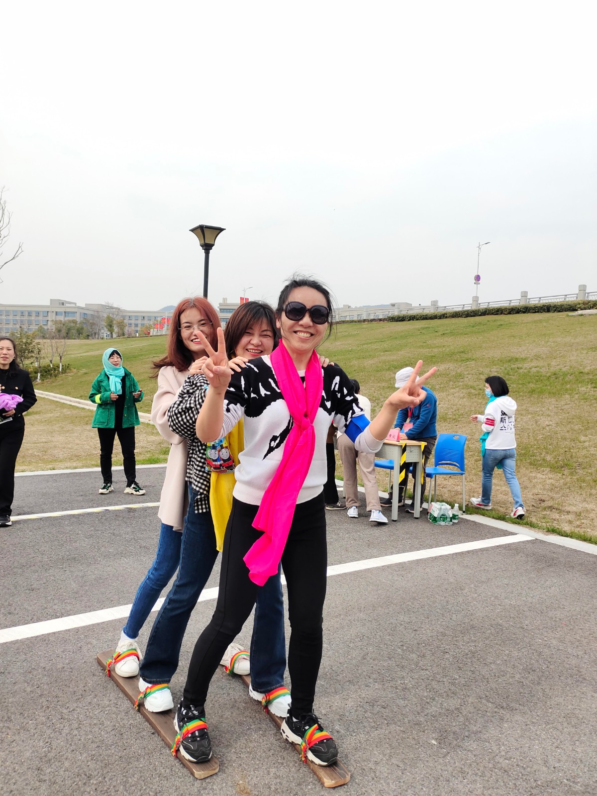 “絲韻流芳”要求3名隊員各選一條絲巾,完成不同的系法并合影;“同舟共濟”需要隊員穿同舟共濟木板鞋,走完規定路線;“砥礪前行”環節隊員手牽手,不穿鞋從趾壓板上共同走過,手均觸到校標;“巾幗射手”“飛盤麗影”“重回童夢”……九個關卡九重考驗,比的是智慧,賽的是體能,競的是合作?;顒蝇F場高潮迭起,氣氛熱烈而緊張,場內的歡呼聲、歡笑聲、鼓掌聲、喝彩聲不斷,大家沉浸在節日的快樂氛圍中,收獲滿滿,幸福滿滿。