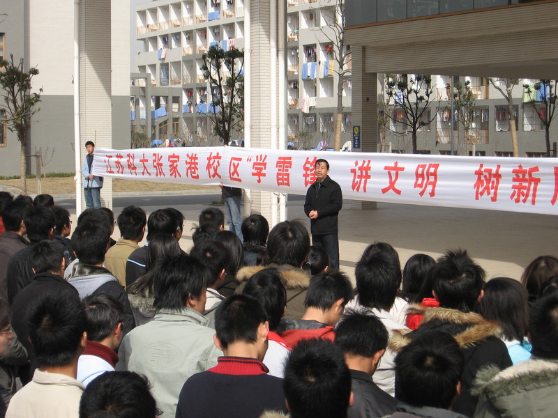 2008年,時任校區黨工委副書記沈貽森在學雷鋒啟動儀式上講話