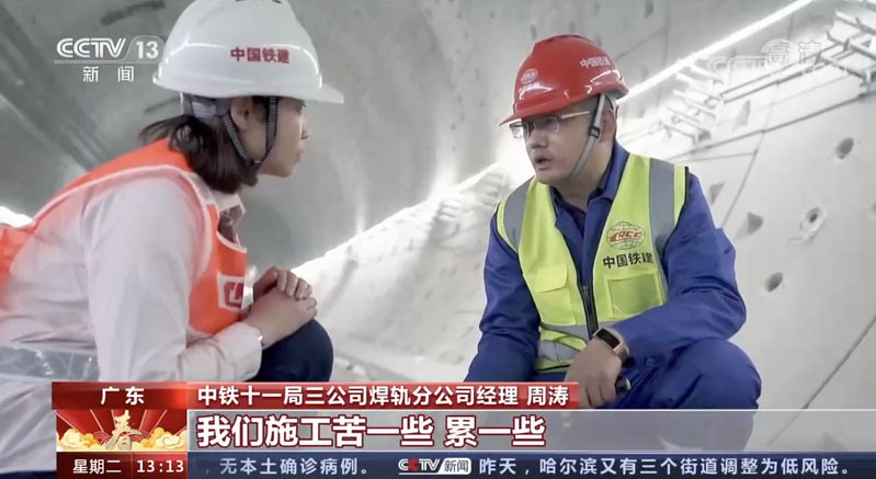 周濤表示,“我們施工苦一些,累一些,一定要保證質量,我們老鐵道兵有句話叫‘逢山開路,遇水架橋’,我們這一代繼續傳承精益求精一絲不茍的精神……”春節假期期間,在廣州地鐵18號線鋪軌建設現場,周濤和他的團隊在工地上忙碌著,每天他和工友們都要往地下走約13層樓高的樓梯,在地下40米的隧道里開始軌道焊接工作。周濤所帶領的焊軌團隊共有65人,他們每天分兩個班組進行作業,每天要工作9個多小時。