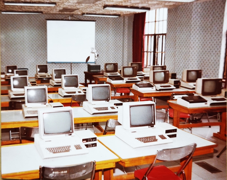 計算機教研室僅有教師7人,由夏祖勛同志任教研室副主任。1981年12月決定成立計算機實驗室,歸屬教研室領(lǐng)導(dǎo),由謝振康同志負責(zé)。為加強教研室的建設(shè),于1981年9月任命顧建業(yè)同志為副主任。計算機中心成立之后,集中力量進行了CJ-709機的搬遷與復(fù)機工作,1983年7月學(xué)院領(lǐng)導(dǎo)明確非三系的各專業(yè)計算機語言課由計算機中心承擔(dān)教學(xué)任務(wù),并成立教學(xué)組,由唐振民任組長。1984年3月9日正式任命計算中心副主任為劉義發(fā)、唐振民。1984年7月,又任命錢遙立為計算機中心主任。劉義發(fā)調(diào)離計算中心。
