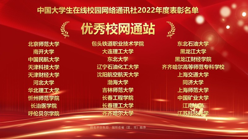 1月10日,教育部中國大學生在線“2022校園號建設暨校網通工作年會”在北京召開,會議對2022年校園網絡通訊站及校園行活動進行了表彰,來自全國高校的指導教師和學生代表線上參會。我校黨委宣傳部融媒體中心校園網絡通訊站從全國600余個校園網絡通訊站中脫穎而出,榮獲“優秀校園網絡通訊站”、校園行活動“優秀組織單位”,黨委宣傳部王文強老師榮獲“優秀指導教師”,繆紅銘同學榮獲“優秀校園媒體人”稱號。