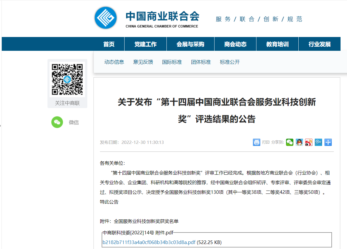 “中國(guó)商業(yè)聯(lián)合會(huì)服務(wù)業(yè)科技創(chuàng)新獎(jiǎng)”是經(jīng)國(guó)家科技部、國(guó)家科學(xué)技術(shù)獎(jiǎng)勵(lì)工作辦公室批準(zhǔn)設(shè)立的獎(jiǎng)項(xiàng),具備提名、推薦國(guó)家科學(xué)技術(shù)獎(jiǎng)資格。