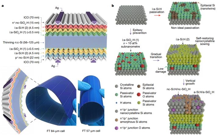 “我想盡自己的一份力,能夠讓學校在我們力所能及的范圍內更上一個臺階!”在今年1月份,李陽領銜的團隊在國際頂級期刊《Nature》上發表關于柔性硅太陽能電池的研究性論文,成為學校首篇《Nature》,打破校史!李陽自豪地介紹:“我們的研究成果彌補了晶硅電池的一個短板,在未來,晶硅太陽能電池可以像卷軸畫一樣卷起來,放在人們的背包或汽車后備箱里用于旅行?!?/span>這一成果不僅為學校贏得了榮譽,也為產業的發展作出了重要貢獻。回想起當時攻克難關的情景,李陽笑著告訴我們:“做事情最重要的就是堅持,這份榮譽和成就屬于我們的團隊、屬于我們共同堅持和付出的每一個日夜。”在近3年的時間里,從硅片到鈍化再到電池,每一個階段都充滿了挑戰。“很多研究光靠老師一個人是做不出來的。”為了在疫情期間加快研究進度,李陽曾在辦公室的沙發床上住過3個月,雖然過程坎坷,但他和他的學生們卻從未言苦言累。他們每天早上8:30來到實驗室,直到晚上10:00后才回宿舍,對此,李陽非??隙▽W生的付出,他的鼓勵和支持讓學生們更加自信、更加堅定地走在科研的道路上,也正是團隊這種忘我的投入和付出,最終換來了科研成果的璀璨綻放。