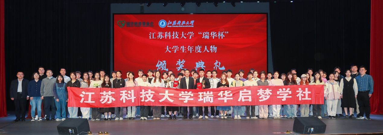 (圖為江蘇科技大學“瑞華杯”大學生年度人物頒獎典禮合影)