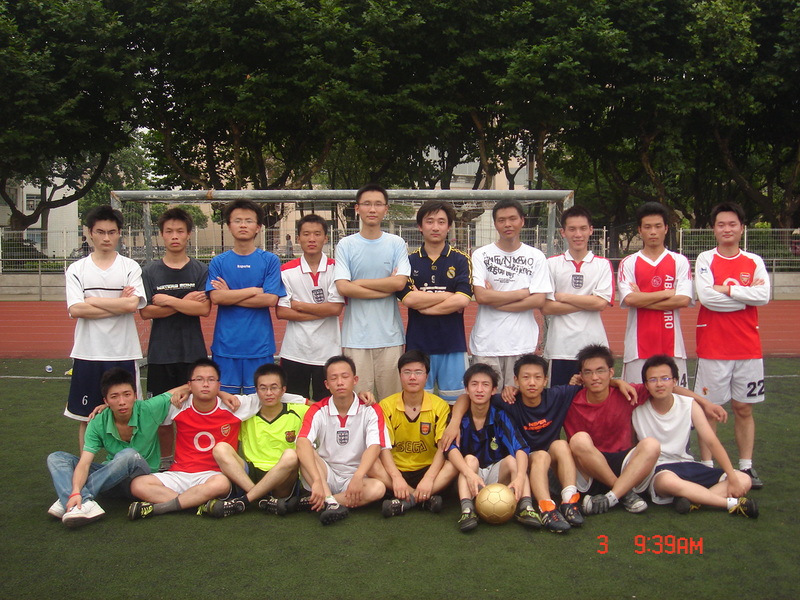郭寧(二排右一)與同學參加足球比賽