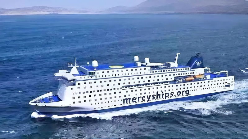 【船型簡介】全球最大醫院船Mercy Ships,遠洋航行醫院船,在非洲地區從事慈善醫療和醫療培訓活動,集乘客生活、醫院醫療、培訓教育功能于一體,是一艘具有高品質醫院區的中型客船。總長174.1米、型寬28.6米、設計吃水6.15米,服務航速12節,排水量達到3.7萬噸,采用兩套全回轉電力推進器,入級英國勞氏船級社。出航時定員500人,在港停靠期間額定載客可達到950人。全船共有12層甲板,7層公共區域及居住艙室,2層醫療區域。其中3、4甲板醫院區域是該船的關鍵功能區,設有門診、化驗室、CT室、X射線室、手術室、住院部、ICU病房等。在5-11甲板設有大型劇院、超市、船上銀行、餐廳、商店、學校等居住區和娛樂休閑區。