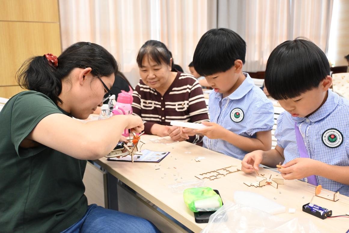 在船海學院學生志愿者的專業指導下,親子家庭共同投入到航模制作的實踐中?;顒蝇F場氣氛熱烈,歡聲笑語不斷。孩子們充分發揮想象力與創造力,與家長默契配合,從拼裝細小的零件,到精心調試船體結構,每一個步驟都凝聚著他們的智慧與心血。在家長的協助下,一艘艘精致的模型小船逐漸成型。這不僅是一次手工技能的鍛煉,更是親子間深度溝通與協作的橋梁,既加強了親子互動,拉近了親子關系,也讓孩子們在動手實踐中體驗到了無盡的樂趣,進一步加深了他們對科學探索的濃厚興趣。