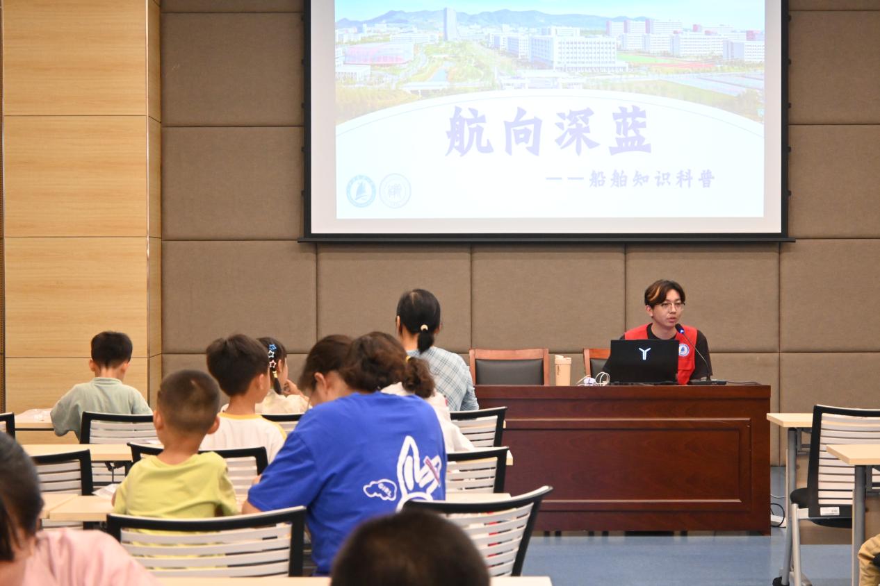 下午14 時,科大教工們伴著孩子們陸續來到活動現場,圖書館 104 報告廳內座無虛席。船海學院的學生化身知識科普員,借助生動的講解與趣味視頻,帶領在場的家長和孩子們開啟了一場精彩的船舶文化之旅。從江蘇科技大學的船舶歷史底蘊,到船舶基本構造的精妙細節,再到世界各大名船的輝煌成就,深入淺出的講解讓晦澀的船舶知識變得通俗易懂,孩子們睜大好奇的雙眼,沉浸在船舶知識的海洋中,為后續的船模制作奠定了堅實的理論基礎。